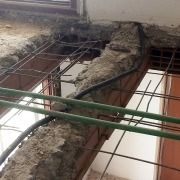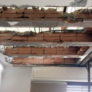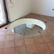 Una prima fase di smantellamento di parte del solaio con relativo progetto strutturale presentato al Genio Civile. Prima del getto sono stati posizionati dei tubi per permettere l'inserimento dei faretti direttamente al soffitto, visibili dalle foto a lavoro finito.