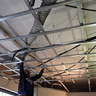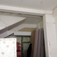 Il lavoro di isolamento delle pareti e del soffitto si rendeva necessario in quanto il locale aperto da poco si trova all'interno di un condominio in un quartiere molto popoloso e ciò richiedeva particolare cura ed attenzione ai rumori indesiderati provocati dallo svolgersi dell'attività durante le ore notturne. Sono stati usati vari strati di materiali previo studio progettuale al fine di identificare la soluzione più idonea secondo quelle che erano le richieste del cliente relative ai costi e ai tipi di suoni prodotti; si è poi proceduto alla realizzazione del soffitto con strutture svincolate acusticamente dalla struttura facendo attenzione ai fori necessari per l'aerazione. Infine si è proceduto a chiudere tutte le pareti perimetrali.