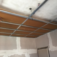 Progetto e lavoro di isolamento acustico totale col metodo di stanza nella stanza. Il cliente necessitava di isolare acusticamente il proprio studio musicale da suoni provocati dal pianoforte e si è quindi proceduto ad analizzare i materiali da utilizzare per poi posarli in opera come evidenziato dalle foto. L'insonorizzazione ha riguardato il pavimento, le pareti, il soffitto e la porta. Molto importante è stato evitare i ponti acustici nella congiunzione tra i vari materiali e particolare cura si è posta nella posa in opera della porta acustica certificata a 42 db.