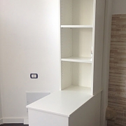 In questo lavoro svolto in un attico di Roma ci è stato chiesto di creare un ambiente pulito, moderno e senza particolari fronzoli ma che fosse allo stesso tempo elegante. Abbiamo cambiato la disposizione degli ambienti allargando le camere da letto, sono stati rivisti gli impianti elettrici e di condizionamento ed è stato inserito un parquet scuro a listoni come contrasto delle pareti che solo in alcuni tratti presentano una pittura colorata effettuata con una sua specifica lavorazione data dal tipo di prodotto. Sono stati cambiati gli infissi per un migliore isolamento acustico e termico. Il controsoffitto è stato appositamente sagomato in alcuni tratti per permettere l'inserimento di arredi molto alti. La posizione dei faretti, delle luci e delle prese sono state analizzate precedentemente con un apposito progetto . Come sempre poi il nostro intervento ha riguardato anche le pratiche burocratiche dando in tal modo un servizio chiavi in mano.