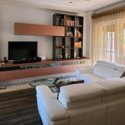 Lavori edili che hanno riguardato la posa in opera de una nuova pavimentazione in gres, la ridistribuzione interna degli spazi con un migliore uso del soggiorno; la realizzazione di una illuminazione a basso consumo energetico con progetto di design per una valorizzazione degli spazi e degli arredi. Sono state sostituite le finestre, ed è stato rifatto completamente tutto l'impianto di condizionamento e riscaldamento con l'inserimento di una pompa di calore collegata ai fan-coil interni e ad un boiler per l'acqua calda, in questo modo è stato tolto l'utilizzo del gas.