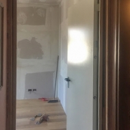 In questo appartamento è stato effettuato un intervento di isolamento acustico del vano porta, in quanto la stanza veniva utilizzata come studio musicale. La porta tradizionale in legno è stata sostituita con un porta acustica certificata ad alte prestazioni. Molto importante, inoltre, è stata l'attenzione posta durante il montaggio che ha visto una direzione dei lavori puntuale, in quanto ogni piccolo dettaglio è fondamentale per la buona riuscita dell'isolamento. Per esempio il montaggio del telaio e del controtelaio devono potersi combinare in modo da evitare ogni possibile passaggio di aria.