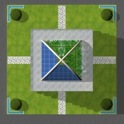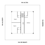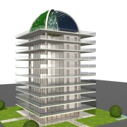 Progetto di una palazzina che chiamo anche la Piccola Torre. La palazzina è formata da 2 appartamenti di 120 mq cad. circa per ogni piano, con un totale di 10 piani compresi in negozi al piano terra. I terrazzi che hanno una luce di 5 metri girano tutt'attorno agli appartamenti. La palazzina è formata da due blocchi di diversi materiali, uno pieno con rivestimento in pietra e uno in vetro. La zona giorno è nella parte in vetro mentre la zona notte è nell’altra. I materiali utilizzati sono quelli della tradizione romana, travertino per la pareti esterne con interposti listelli in peperino. Ai quattro angoli della struttura dei pilastroni raggiungono e superano la copertura per poi formare delle arcature che fanno da sostegno a dei pannelli fotovoltaici e a delle piante rampicanti. Sul terrazzo è anche inserito un giardino pensile.