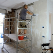 Lavori di ristrutturazione di un appartamento a Roma, rifacimento dei pavimenti con inserimento di un impianto radiante collegato ad una caldaia a condensazione e installazione di un addolcitore per evitare la formazione di calcare. Risistemazione dei pavimenti e delle pareti. Piccolo allargamento della finestra del soggiorno nel quale è stata realizzata una libreria con apposito progetto come richiesto dal cliente. Progettazione e realizzazione dell'illuminazione all'interno dell'appartamento e sul terrazzo sul quale sono state inserite delle vetrate panoramiche mentre il parapetto delle stesso è stato isolato termicamente, in questo modo il terrazzo offre una barriera al freddo e risultando anche più vivibile.