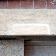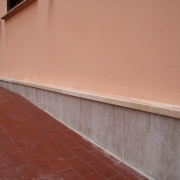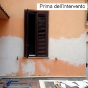 Si sono sanate le parti ammalorate tramite apposita calce idraulica e si è poi proceduto alla verniciatura al quarzo rispettando i colori della facciata originale. Alla base è stata posta una protezione in travertino con opportuno gocciolatoio al fine di evitare ristagni d'acqua.