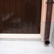 La pavimentazione antistante la cantina è stata totalmente rifatta mentre la porta della stessa ha subito prima un rinforzo strutturale e poi riverniciata seguendo i colori della finestra accanto.